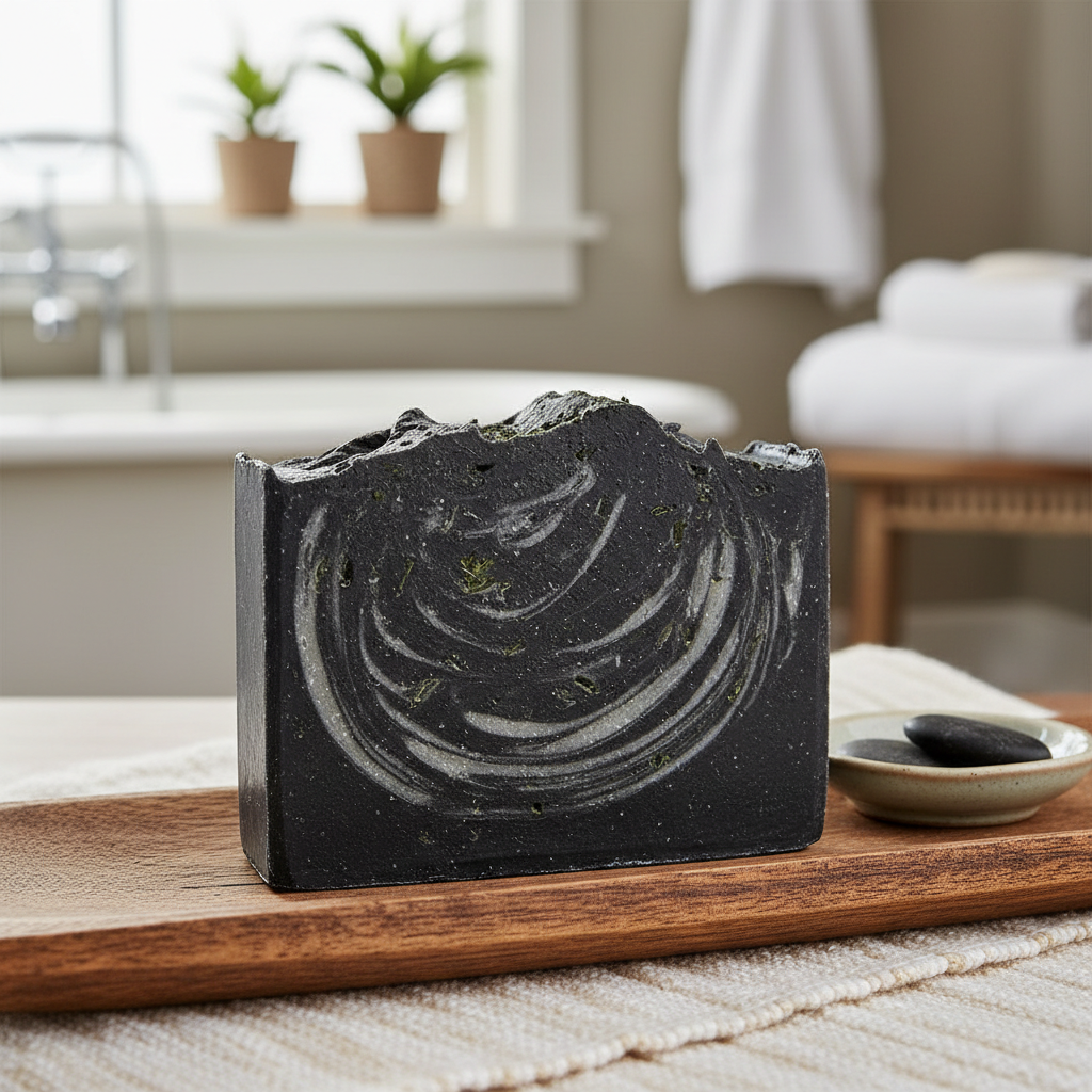 Un jabón purificante con carbón activado y menta, ideal para limpiar profundamente y refrescar la piel.